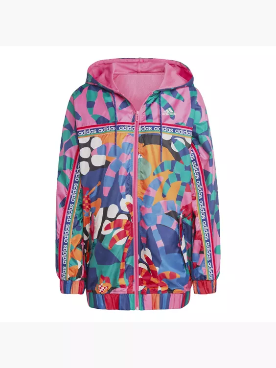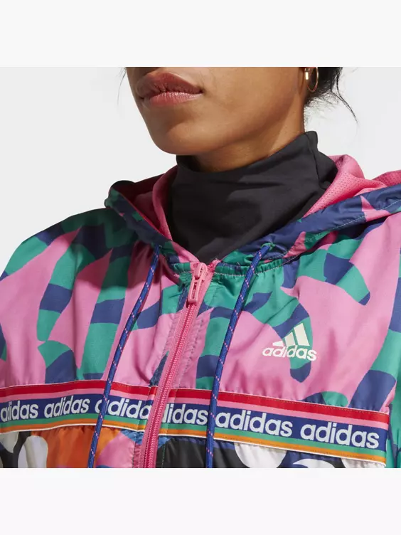 Auch beim Training an kalten Tagen strahlst du. Diese adidas Kapuzenjacke ist locker geschnitten und dadurch superbequem. Das Mesh-Futter sorgt für Atmungsaktivität. Der auffällige Allover-Print aus der Zusammenarbeit mit dem brasilianischen Label FARM Rio sorgt außerdem für einen farbigen Hingucker.Das Produkt ist Teil unseres Engagements gegen Plastikmüll und besteht zu 100 % aus recycelten Materialien.