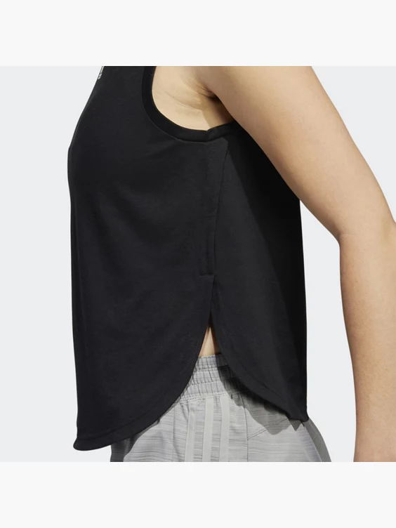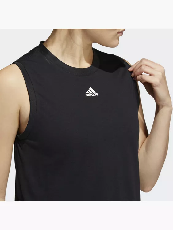 Dieses bequeme adidas Trainingsoberteil ist der ideale Begleiter, wenn du dich bei deinem Workout immer noch ein Stück weiter pushst. Das weiche Jersey-Material aus recyceltem Polyester und Baumwolle hält dich dank feuchtigkeitsabsorbierender AEROREADY Technologie angenehm trocken. Der Rundhalsausschnitt garantiert ein Plus an Tragekomfort und das ärmellose Design gibt dir außerdem volle Bewegungsfreiheit.