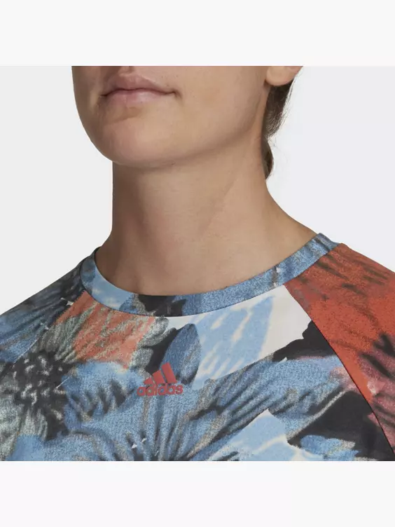Schlichte Silhouette trifft auf auffälligen Print: Dieses adidas T-Shirt zeigt mit seinem üppigen Blumendesign, dass mehr manchmal mehr ist. Es ist kürzer und locker geschnitten und passt perfekt zu Leggings oder fließenden Röcken. Auch in Kombi mit einer klassischen Trainingshose entsteht ein cooler Statement-Look. Unsere Baumwollprodukte unterstützen einen nachhaltigeren Baumwollanbau.