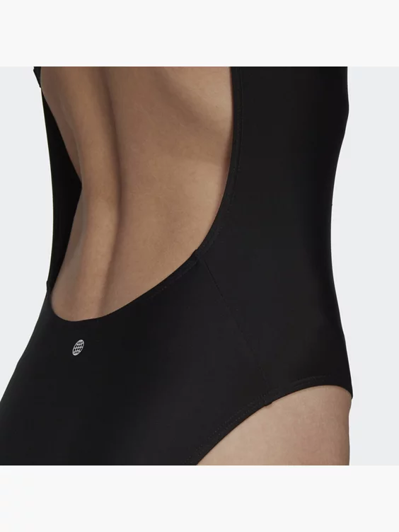 Egal, ob du deine Bahnen ziehst oder am Strand entspannst – dieser adidas Badeanzug ist bequem und setzt deine Kurven perfekt in Szene. Sein chlorresistentes Material ist besonders weich und strapazierfähig. Ein adidas Logo auf der Vorderseite sorgt außerdem für sportlichen Style.Das Produkt wurde aus chlorresistentem Material mit regeneriertem ECONYL® Garn hergestellt.