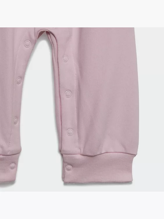 Ein Klassiker im sportlichen adidas Style für deinen kleinen Schatz. Dieser adidas Einteiler für Babys und Kleinkinder ist aus weichem French Terry aus Baumwolle und Polyester. Durch die Druckknöpfe am Rücken und an den Beinen lässt er sich easy an- und ausziehen. Außerdem kommt der Einteiler mit UNITEFIT – einem genderneutralen Designkonzept, bei dem die Schnitte auf verschiedenen Körperformen und Größen basieren.Dieses Produkt besteht zu mindestens 70 % aus einem Mix aus recycelten und erneuerbaren Materialien.
