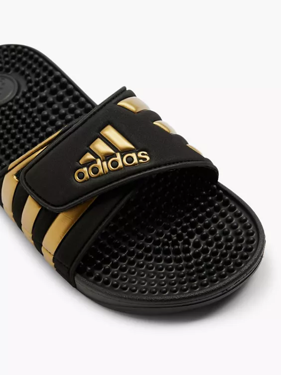 Die adidas Adissage Badeschlappen haben einen weitenregulierbaren Riemen, der sich perfekt an deinen Fuß anpassen lässt. Außerdem garantiert das Fußbett mit Massagenoppen Komfort pur für müde Füße nach einem harten Workout.Sie sollten also in keiner Gym-Tasche fehlen. Wenn du allerdings auf der Suche nach bequemen Massage-Badeschlappen für den Alltag bist, empfehlen wir dir die Adissage TND Badeschlappen.