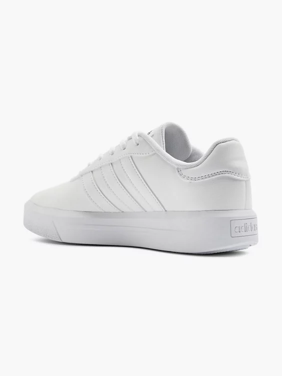 Dieser adidas Sneaker hat ein sleekes Synthetik-Obermaterial und 3-Streifen mit einem leichten Glanz. Die Plateausohle verleiht ihm einen chunky, modernen Look. Kombiniert mit einer Jogginghose mit schmal zulaufender Beinform oder einem eng anliegenden Kleid wird dein Outfit perfekt.Das Obermaterial hat einen Recycling-Anteil von mindestens 50 %. Dieses Produkt ist nur eine unserer Lösungen im Kampf gegen Plastikmüll.