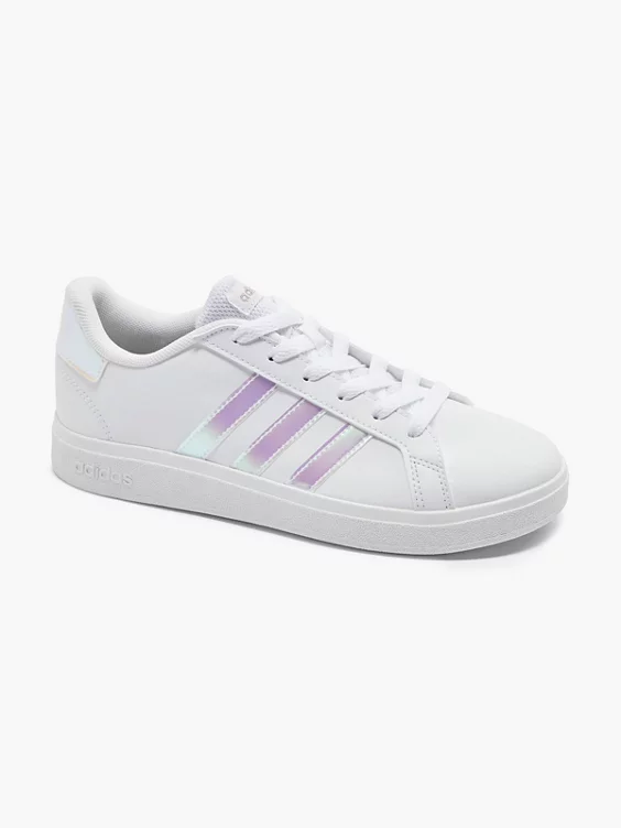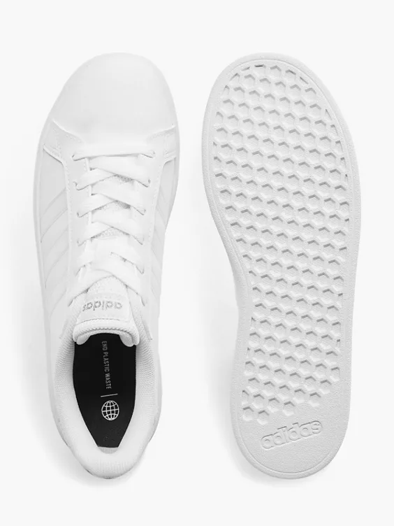 adidas hat dem klassischen Grand Court für Kinder ein modernes Update verpasst. Das Obermaterial aus weichem Synthetikleder steckt beim Spielen und Toben jede Menge ein, während die flexible Gummi-Cupsohle wachsende Kinderfüße schützt und ihnen Halt gibt. Wen wundert es da noch, dass dieser Schuh nicht nur die Kleinen begeistert? Das Obermaterial hat einen Recycling-Anteil von mindestens 50 %. Dieses Produkt ist nur eine unserer Lösungen im Kampf gegen Plastikmüll.