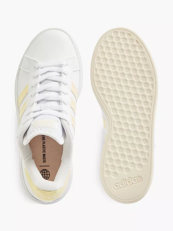 Der adidas Grand Court ist seit den 70ern ein echtes Must-have. Und diese neu aufgelegte Version des Klassikers darf in deiner Sneakersammlung nicht fehlen. Mit seinen klassischen 3-Streifen verpasst er jedem Outfit einen sportlichen Touch. Mit einem Recycling-Anteil von mindestens 50 % im Obermaterial ist dieses Produkt nur eine unserer Lösungen im Kampf gegen Plastikmüll.